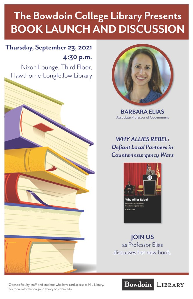Barbara Elias Bowdoin College 2013 Dalei Jie Peking University 2013 Emily Thorson George Washington University 2013. Barbara Elias who was promoted on July 1 to associate professor of government and granted tenure at Bowdoin College in Brunswick Maine has received the American Political Science Associations 2020 award for Best International Security Book by a Non-tenured Faculty Member. The Muslim Student Association invited Assistant Professor of Government Studies Barbara Elias to deliver a talk What You Dont Know About Islam and Politics last Thursday evening.